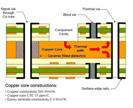 散热管理方案、优良的热分布、 加强热传导性、铜芯 CTE 17ppm/C、 导热 385 WmK